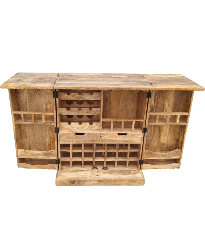 • Space-Saving Folding Design: Cleverly designed to open up into a full bar counter and fold back into a compact cabinet when not in use.