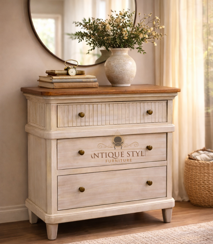 Enhance your interiors with timeless elegance using this Classic Wooden Chest of Drawers. Designed with a refined antique finish and a contrasting wooden top, this piece brings warmth and sophistication to any space. Crafted from high-quality solid wood, it offers ample storage through smoothly operating drawers while maintaining a compact and stylish profile. Ideal for bedrooms, living rooms, or hallways, this chest blends traditional charm with modern functionality.