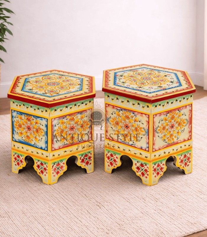 Most of our products are crafted from high-quality materials such as solid Mango Wood, Sheesham Wood, metal accents, ceramic tiles, and hand-woven elements. Each product page includes detailed material specifications.