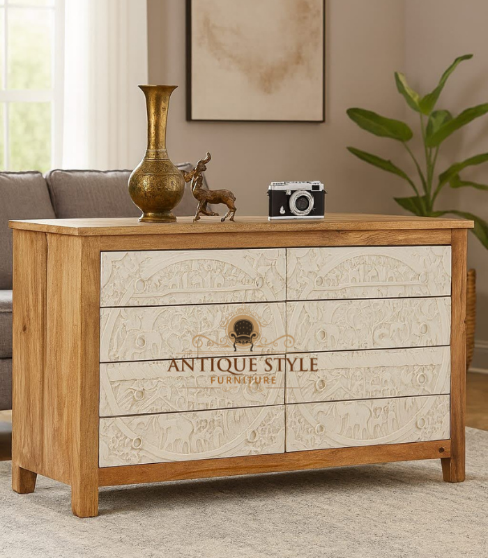 Most of our products are crafted from high-quality materials such as solid Mango Wood, Sheesham Wood, metal accents, ceramic tiles, and hand-woven elements. Each product page includes detailed material specifications.