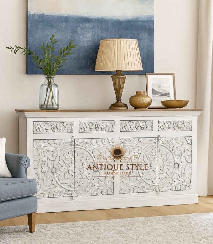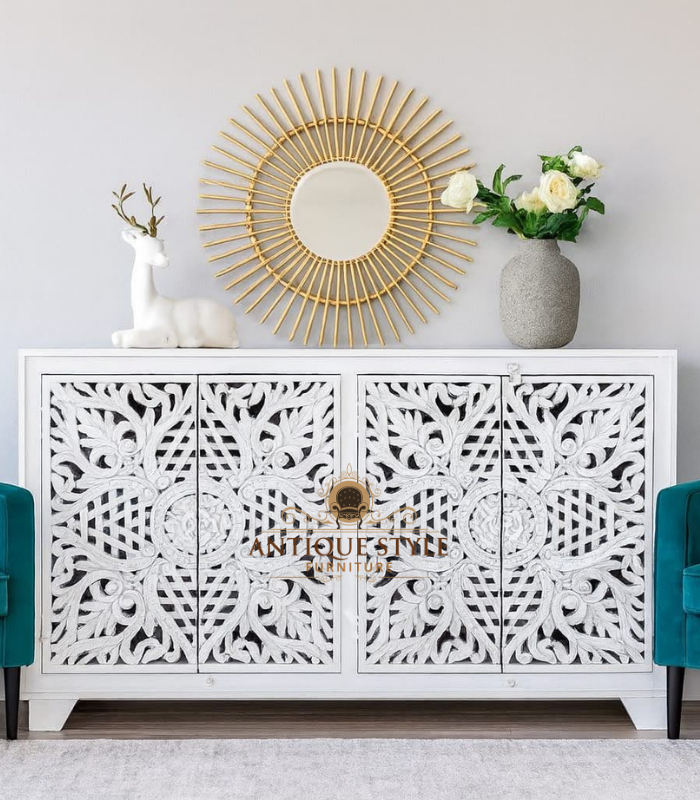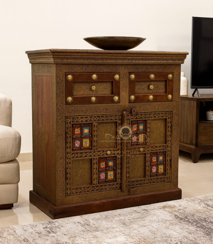 Vibrant Hand-Painted Artwork: Intricate floral motifs and folk-inspired patterns hand-painted on doors and drawers.