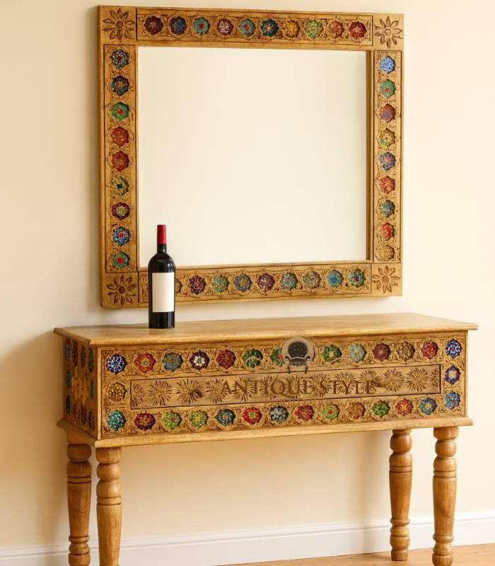 Most of our products are crafted from high-quality materials such as solid Mango Wood, Sheesham Wood, metal accents, ceramic tiles, and hand-woven elements. Each product page includes detailed material specifications.